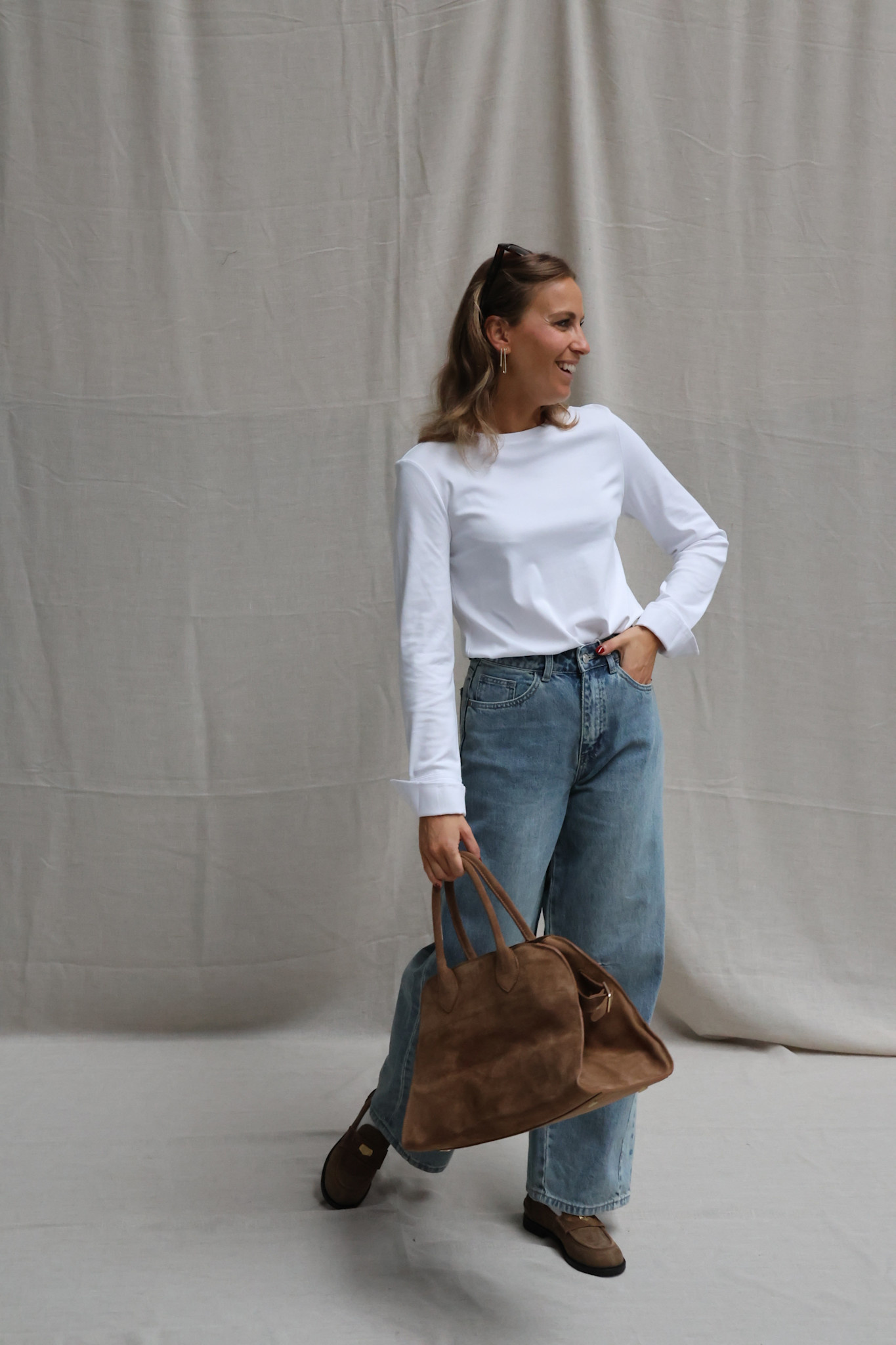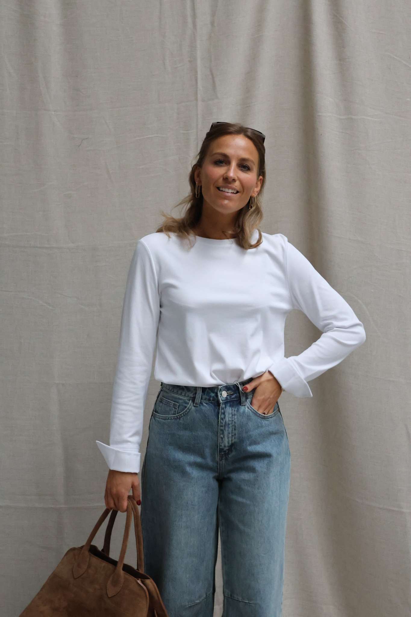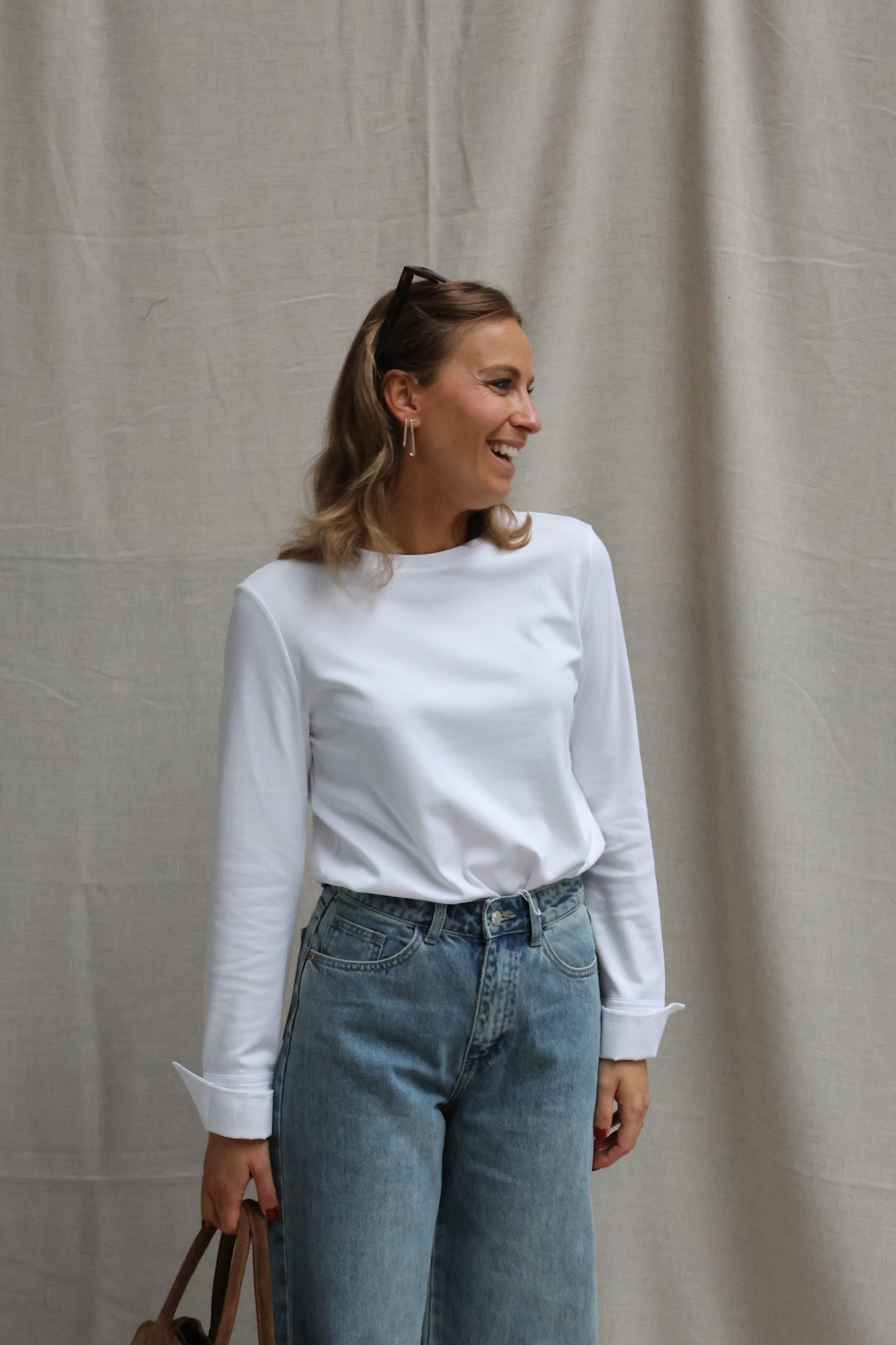 Tip: draag jij graag aansluitend? Neem een maat kleiner! Draag je graag los(ser)? Neem je eigen maat! Ik draag hier mijn eigen maat S en valt perfect zoals ik het graag heb. Team member Lore heeft graag dat haar longsleeves aansluiten waardoor zij een maat kleiner nam
