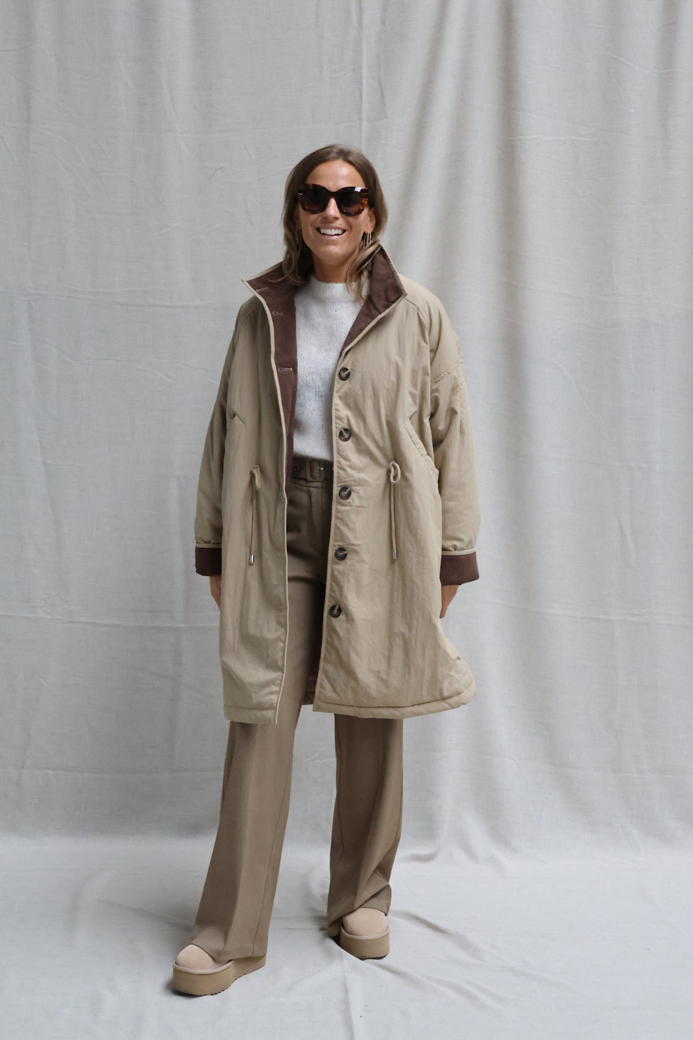Supermooie corduroy details aan de binnenzijde, aan de mouwen en kraag