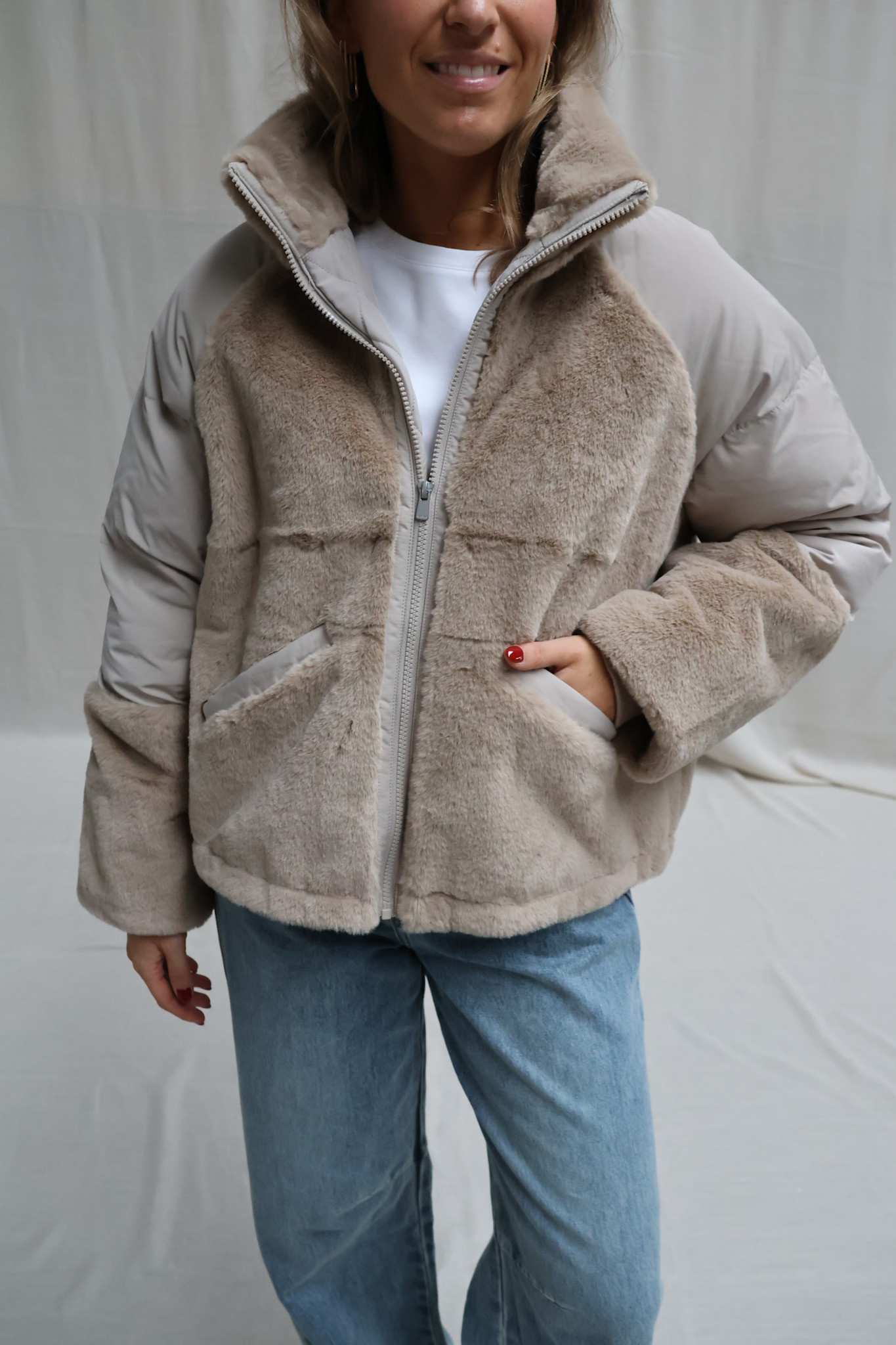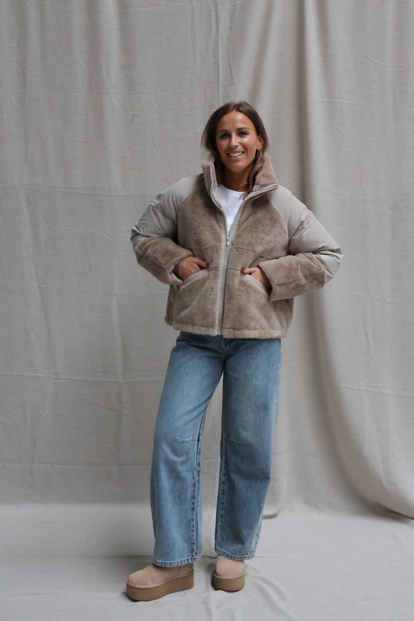 INFO YAYA: Deze korte jas is ontworpen met zachte teddy aan de voor- en achterkant. De mouwen zijn gewatteerd en afgewerkt met brede teddy manchetten. De opstaande kraag en losse pasvorm geven een moderne uitstraling. Voorzien van een ritsluiting, schuine steekzakken en een aantrekkoord aan de onderkant, zodat je de pasvorm naar wens kunt aanpassen. Ideaal voor een warme en stijlvolle look.