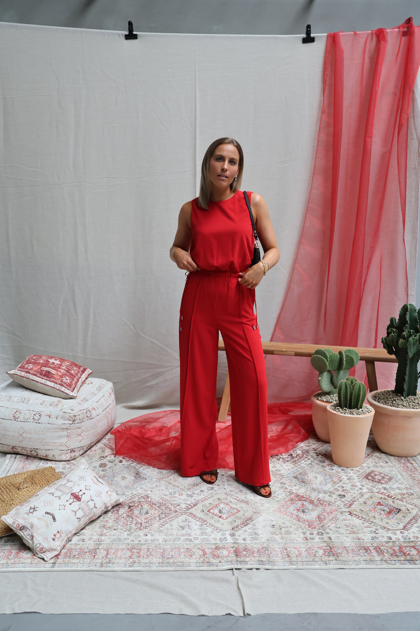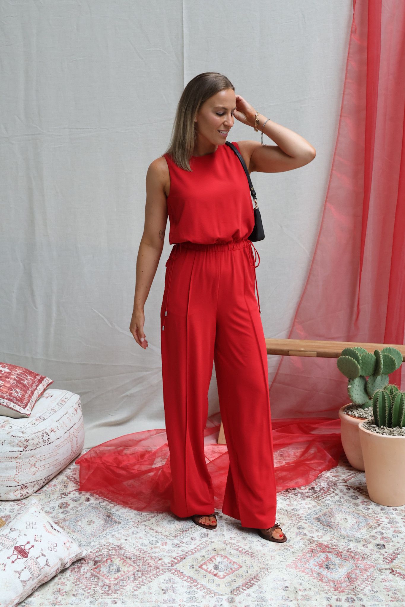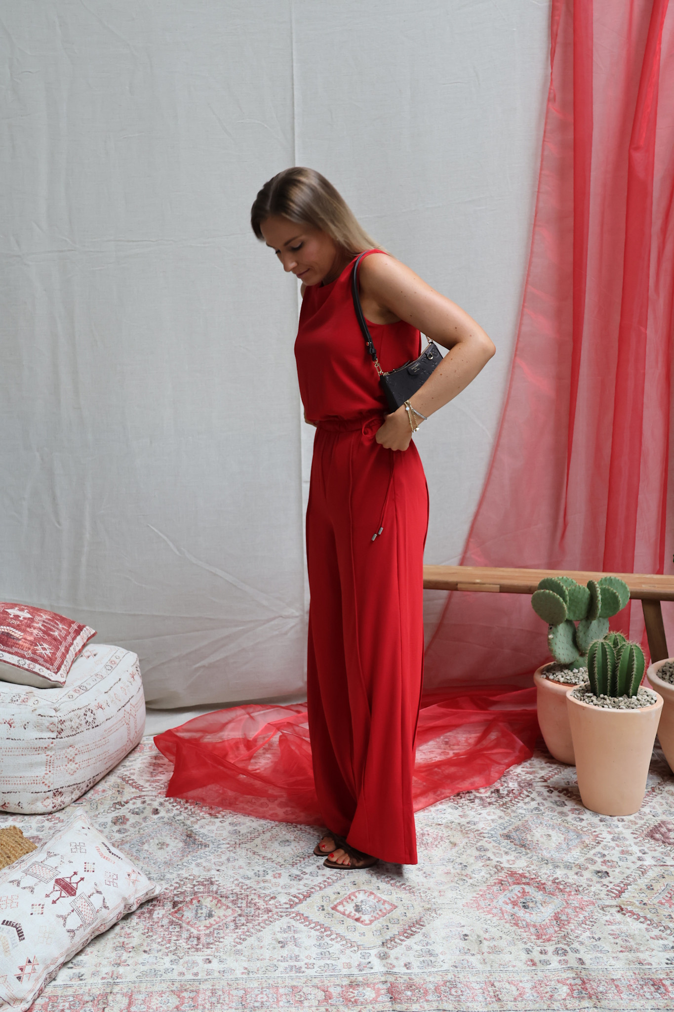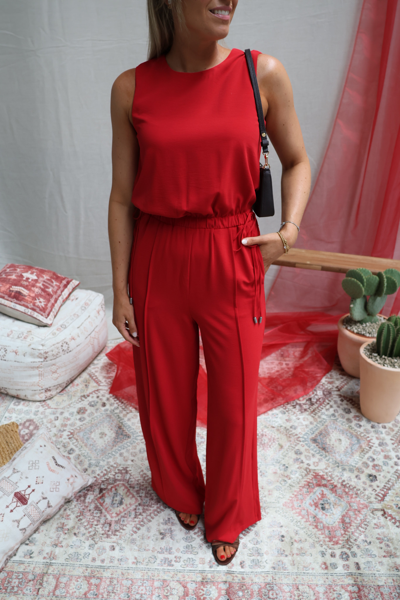 INFO YAYA: Deze elegante jumpsuit is gemaakt van een soepele geweven stof en heeft een mouwloos design met een ronde hals. De taille is voorzien van een elastiek met verfijnde koorden aan de zijkant voor een flatterend silhouet. De rechte, wijde pijpen zorgen voor een luchtige uitstraling. Sluit met een verborgen rits op de rug.