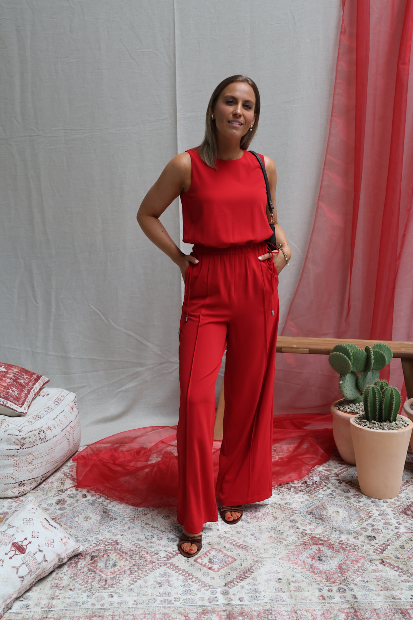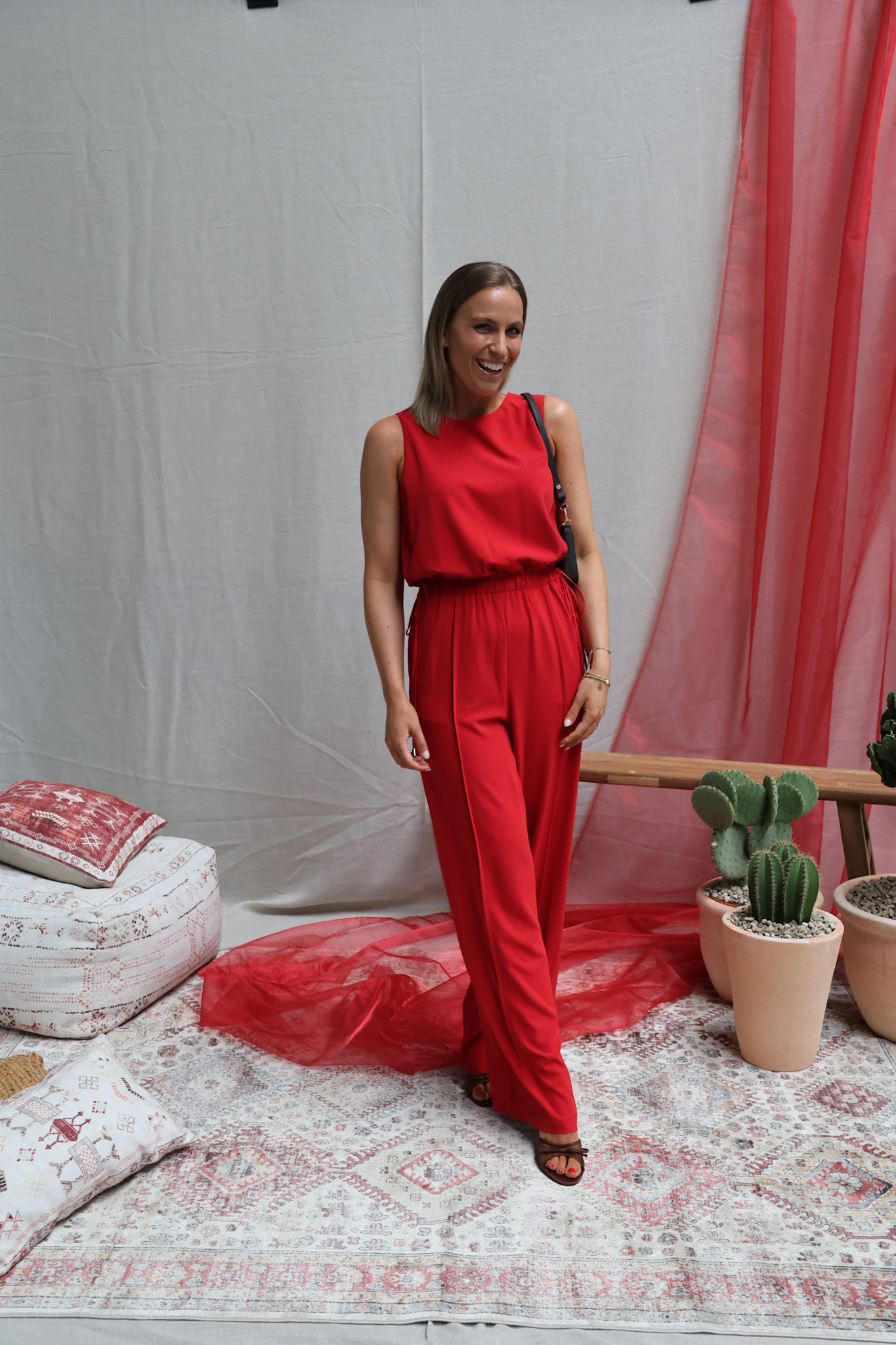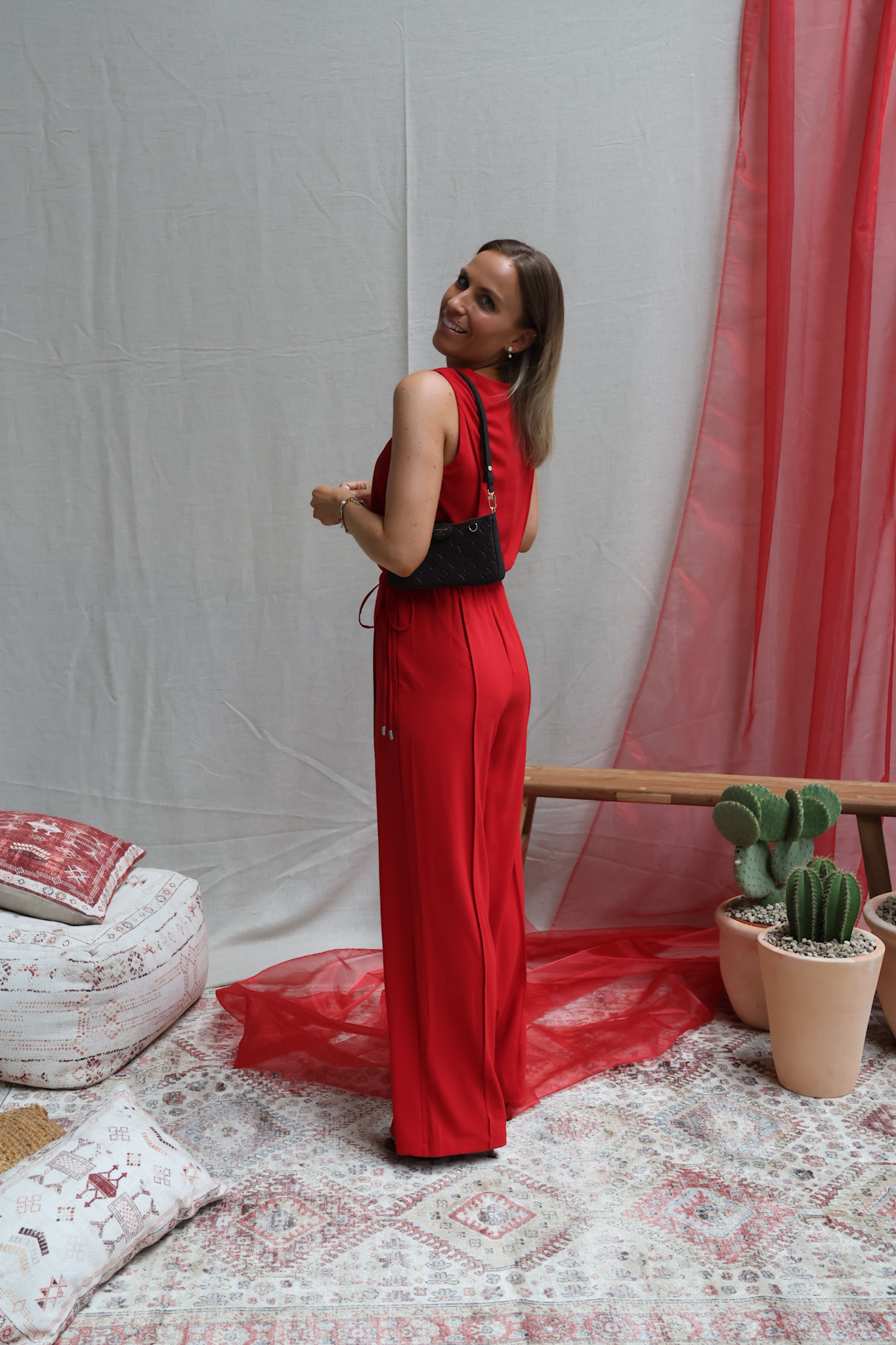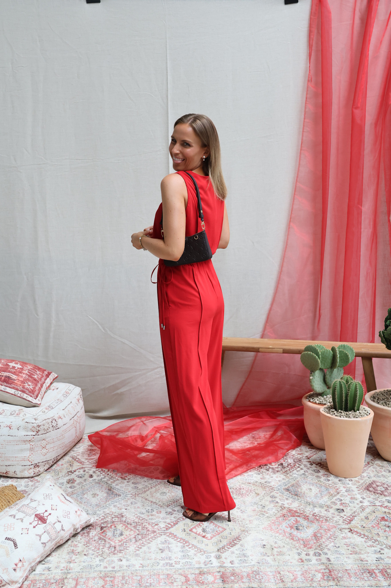 INFO YAYA: Deze elegante jumpsuit is gemaakt van een soepele geweven stof en heeft een mouwloos design met een ronde hals. De taille is voorzien van een elastiek met verfijnde koorden aan de zijkant voor een flatterend silhouet. De rechte, wijde pijpen zorgen voor een luchtige uitstraling. Sluit met een verborgen rits op de rug.
