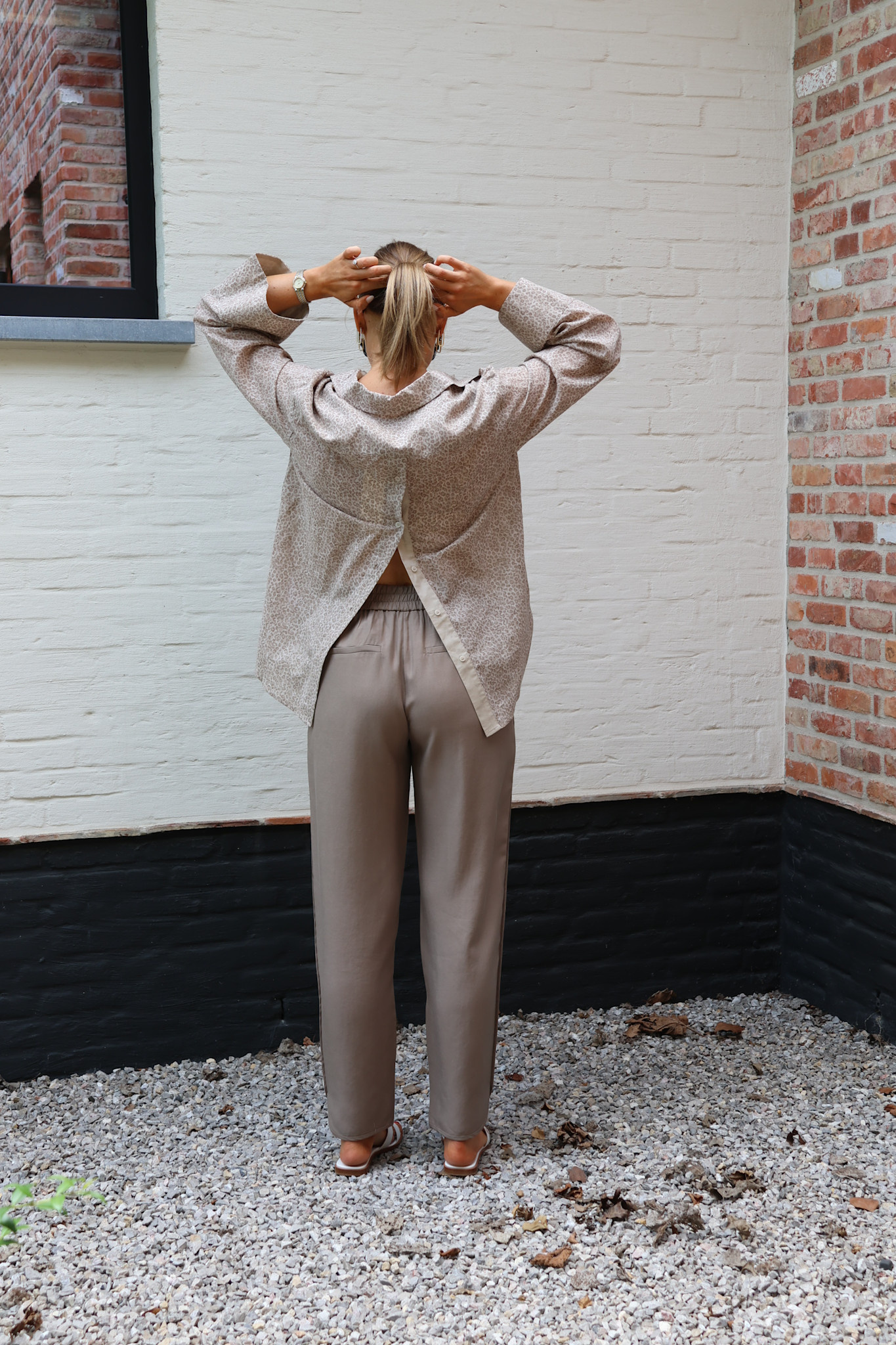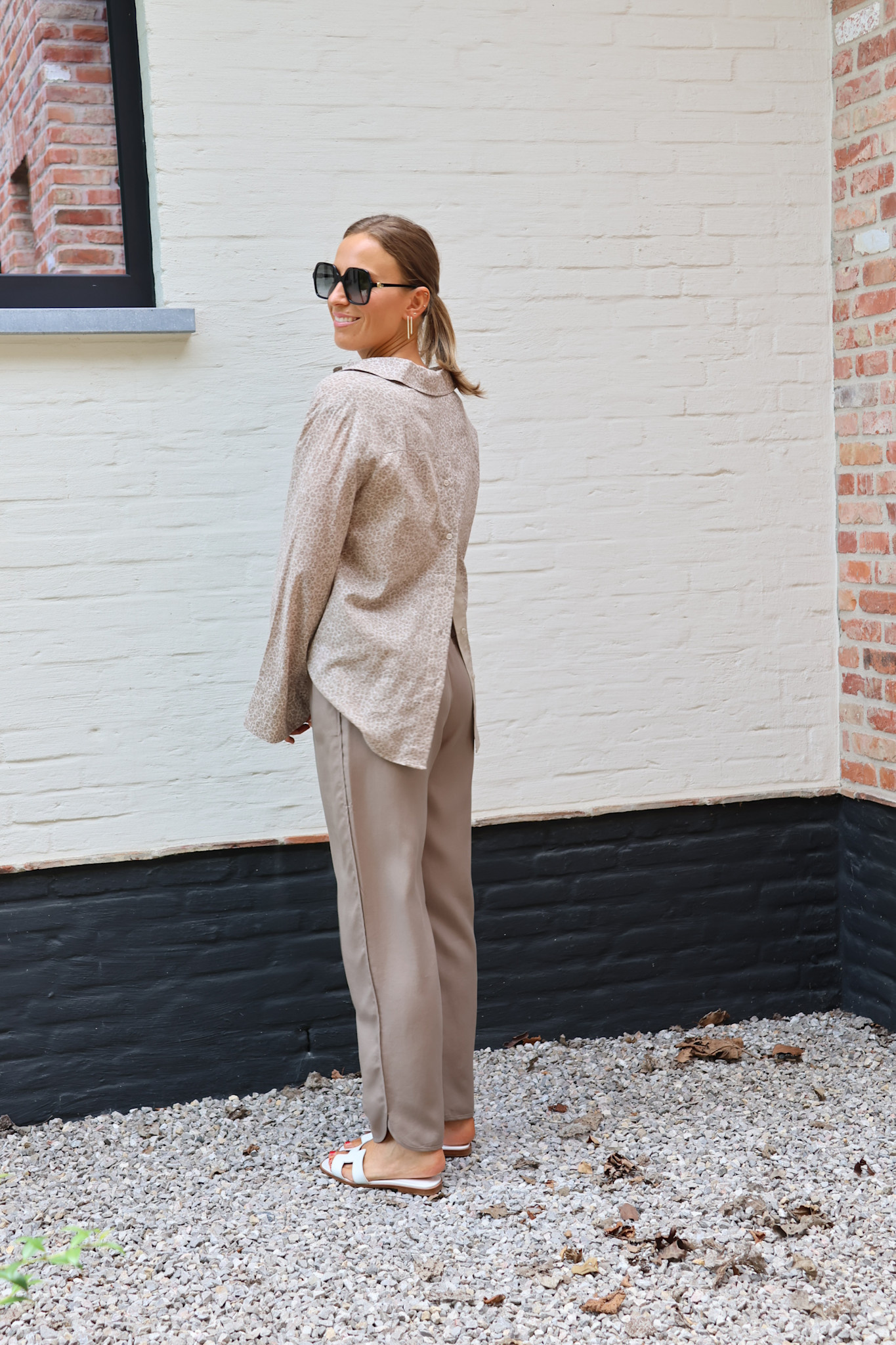 Leuk detail: broekspijp onderaan afgerond met een kleine split
