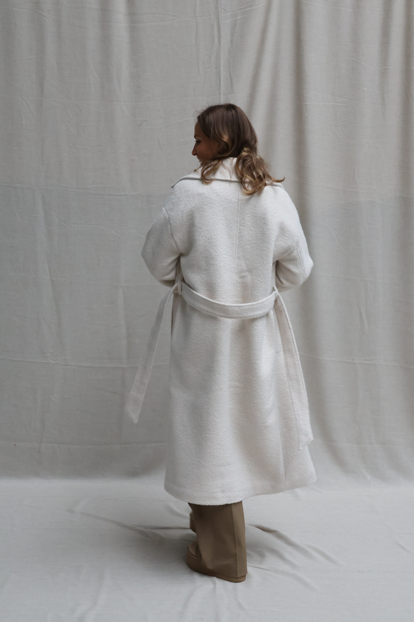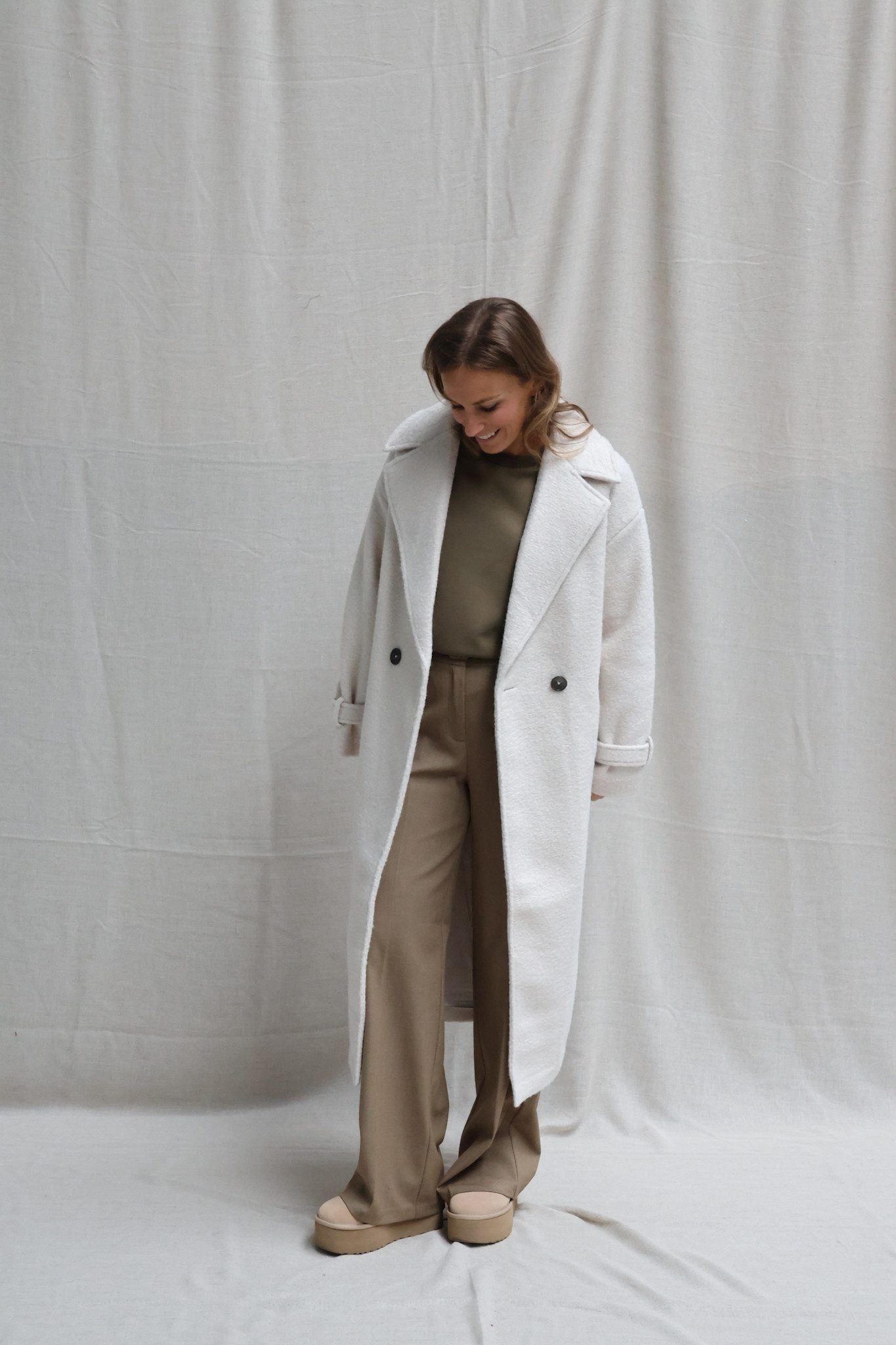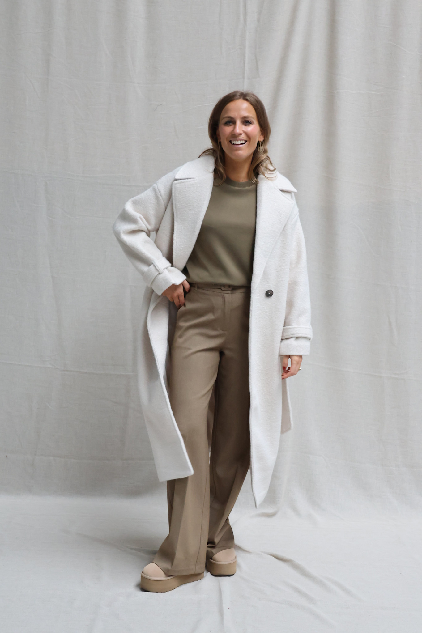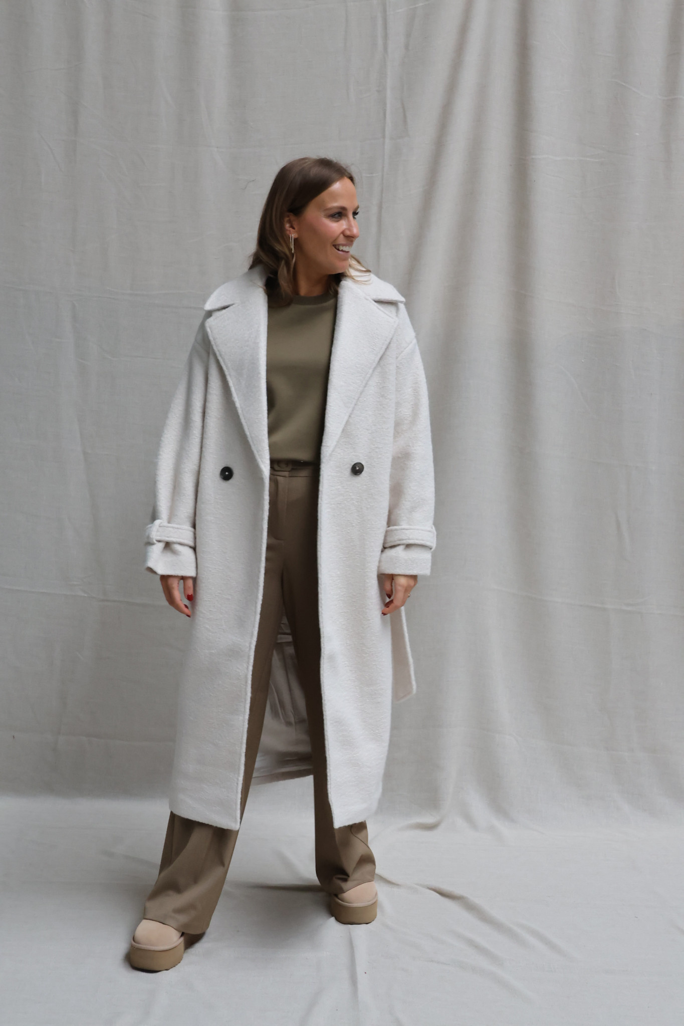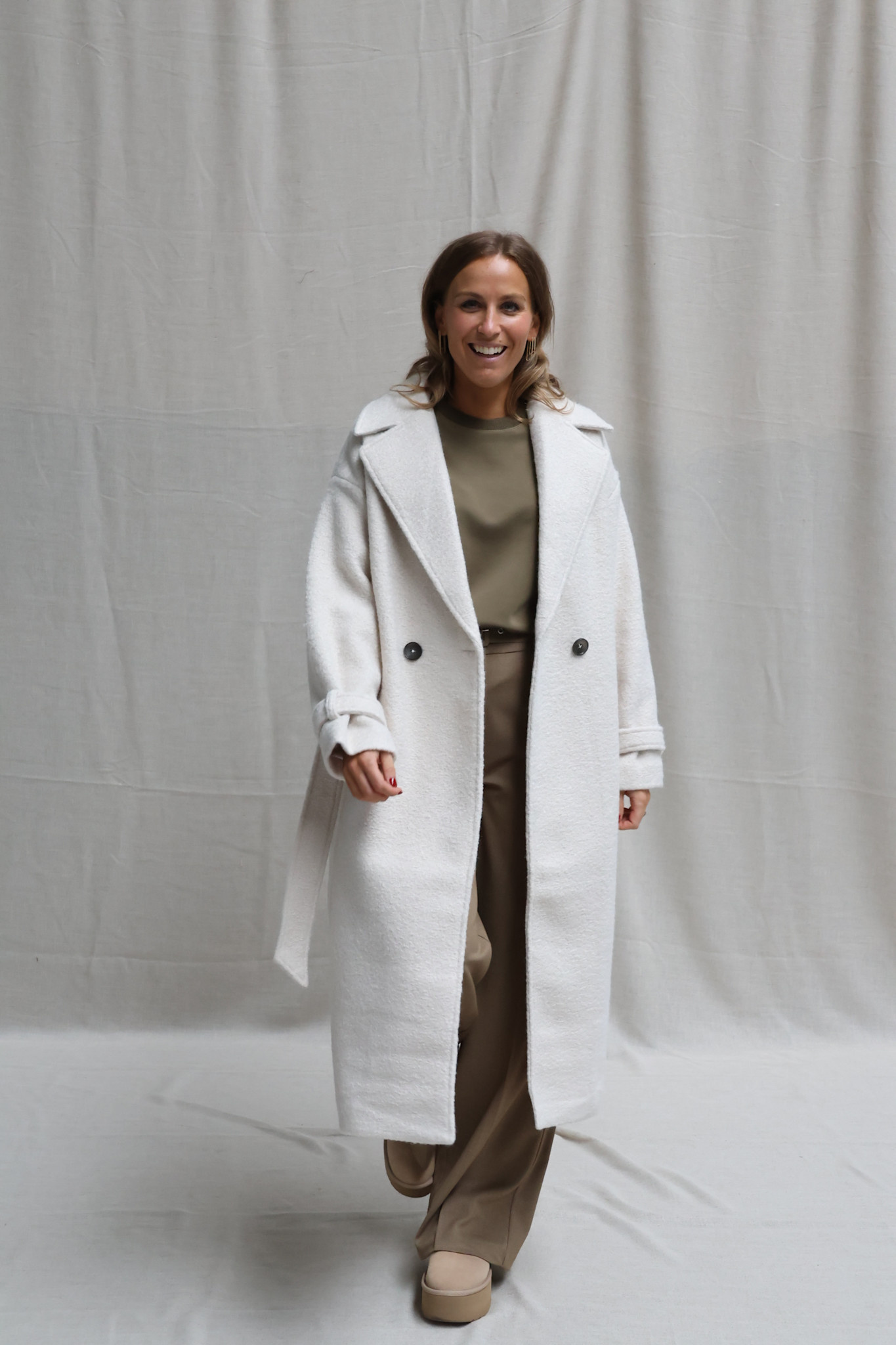 INFO YAYA: Deze stijlvolle lange jas is uitgevoerd in een zachte bouclé stof en heeft een oversized pasvorm. Het ontwerp is voorzien van een klassieke reverskraag, dubbele knoopsluiting en een bijpassende ceintuur voor een vrouwelijke taille. Afgewerkt met manchetdetails en steekzakken voor een elegante en comfortabele najaarslook.