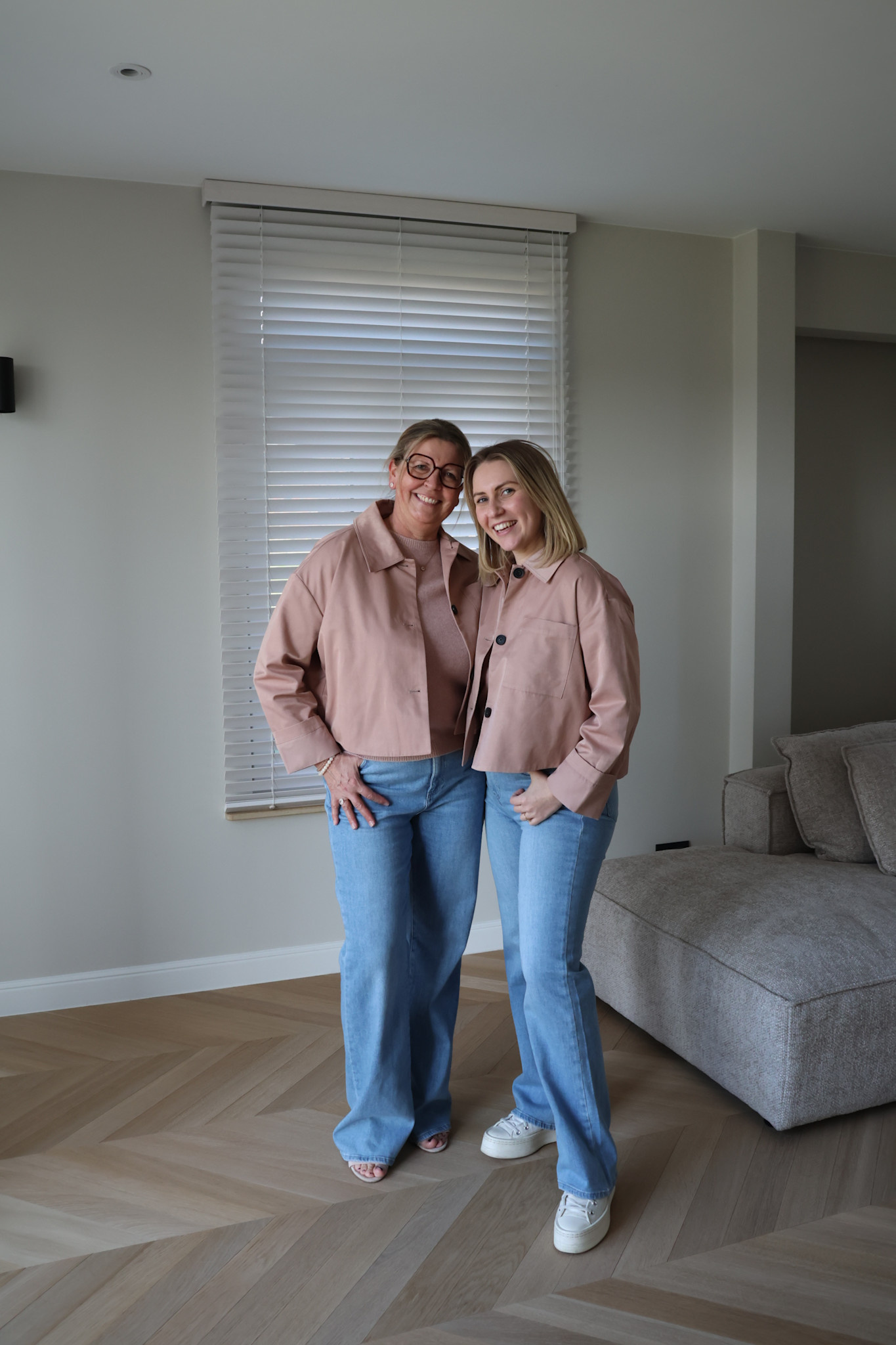 Isabelle - mama van Lore - is 1,71m en draagt maat M/38 in bovenstukken & XL/42 in broeken.