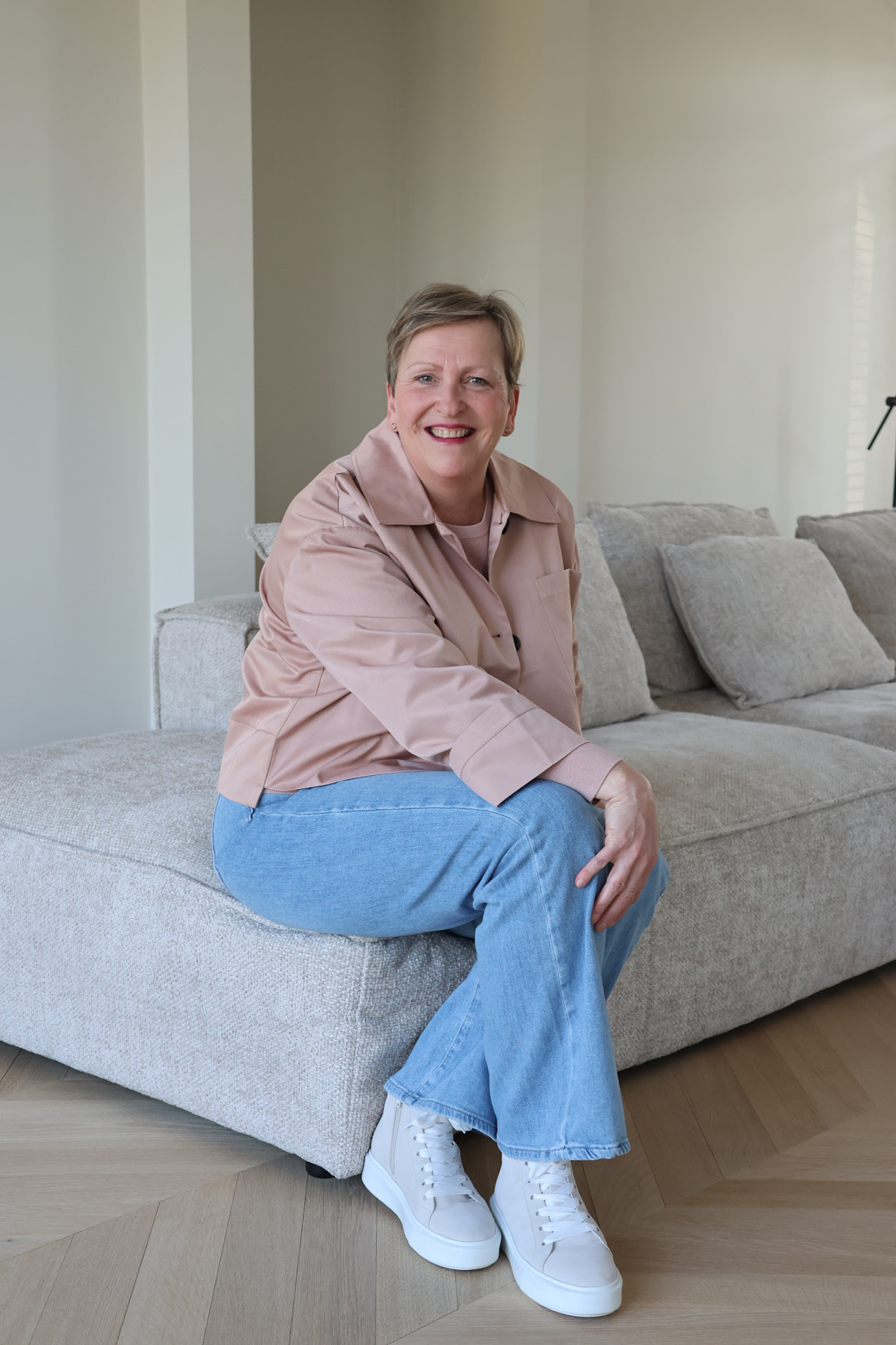Anneke - mama van Marilie - is 1,66m en draagt maat L/40 in bovenstukken & XL/42 in broeken.