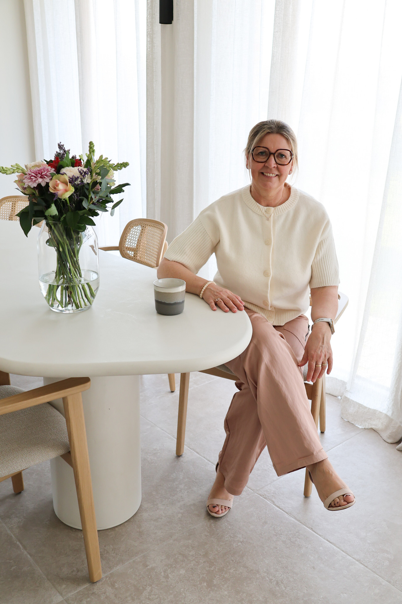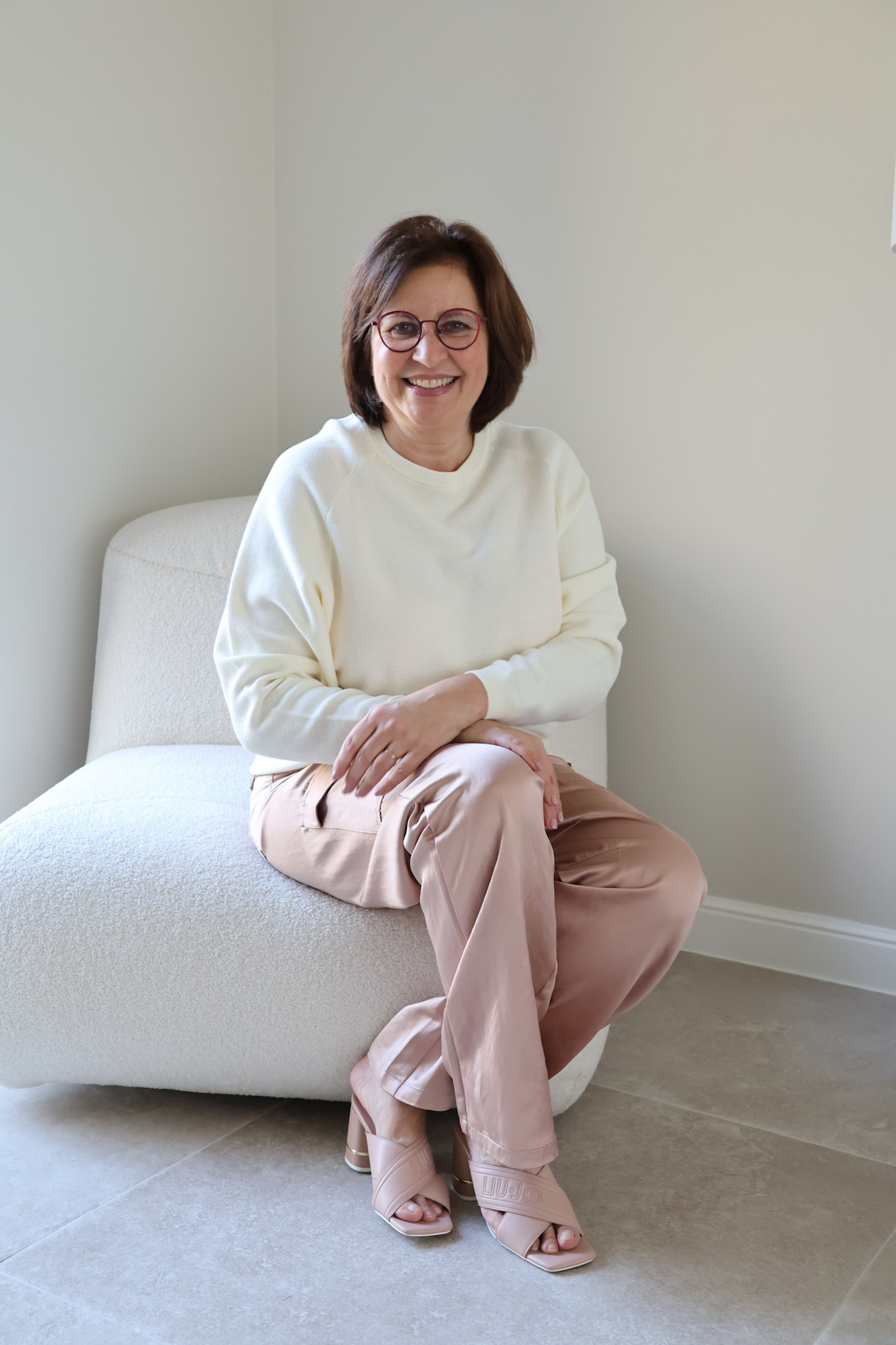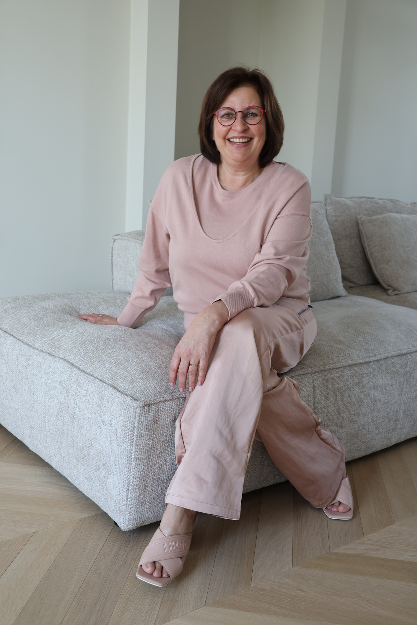 Anneke - mama van Marilie - is 1,66m en draagt maat L/40 in bovenstukken & XL/42 in broeken.