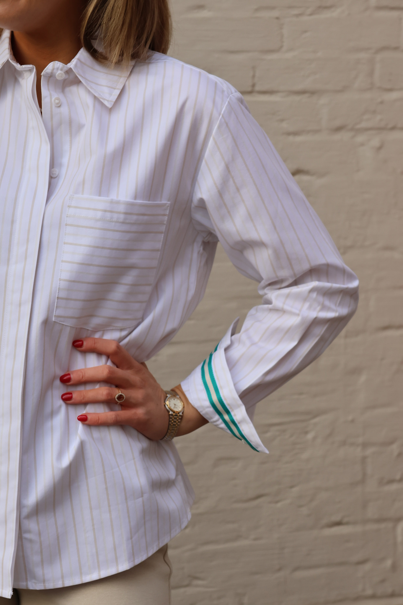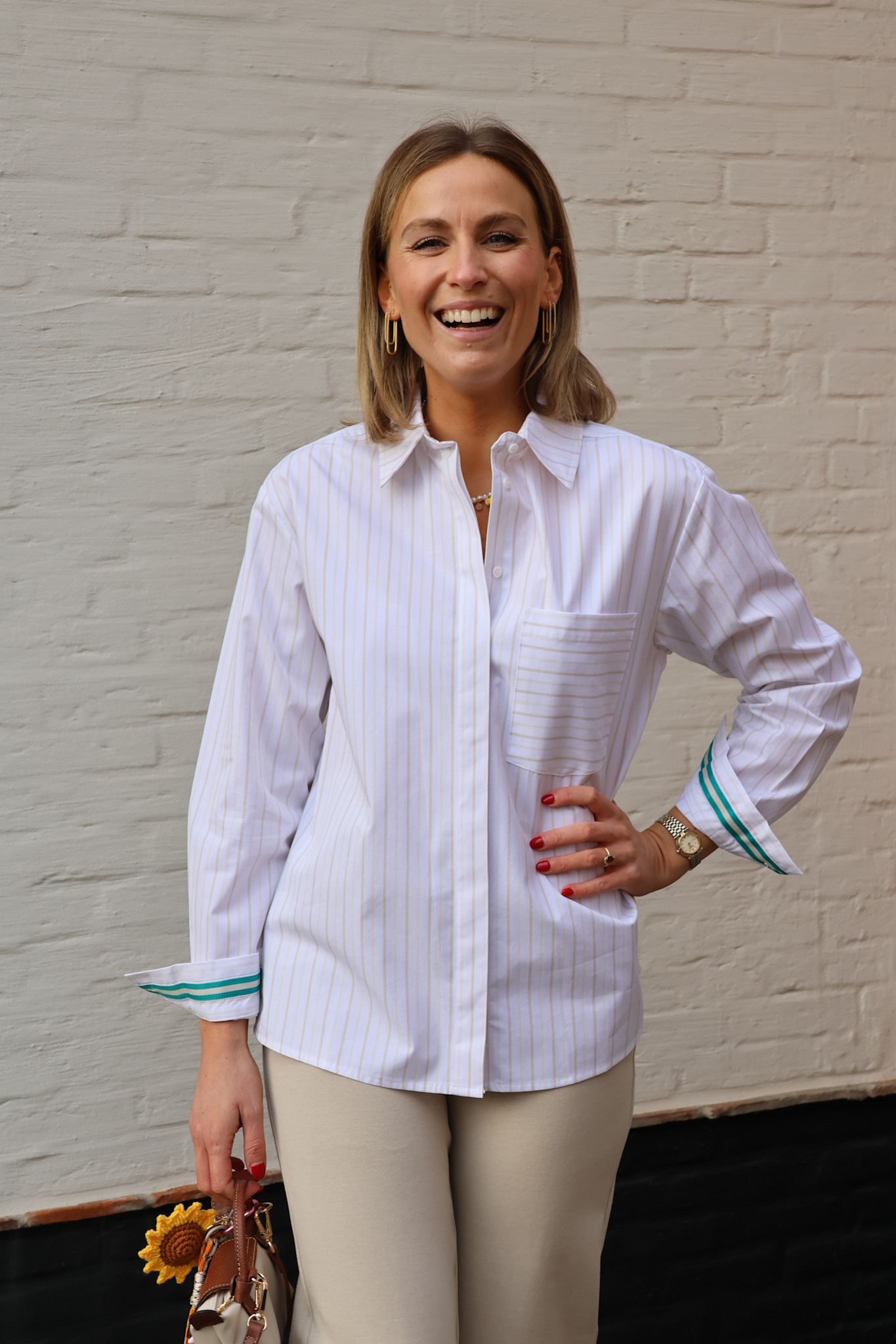 INFO YAYA: Deze stijlvolle blouse is gemaakt van een lichte stof met een subtiel gestreept patroon. Ontworpen met een klassieke kraag, lange mouwen en een borstzak voor een casual touch. De manchetten zijn afgewerkt met contrasterende strepen voor een verfijnde en moderne uitstraling. Perfect te combineren met jeans of een nette broek voor een veelzijdige en tijdloze look.