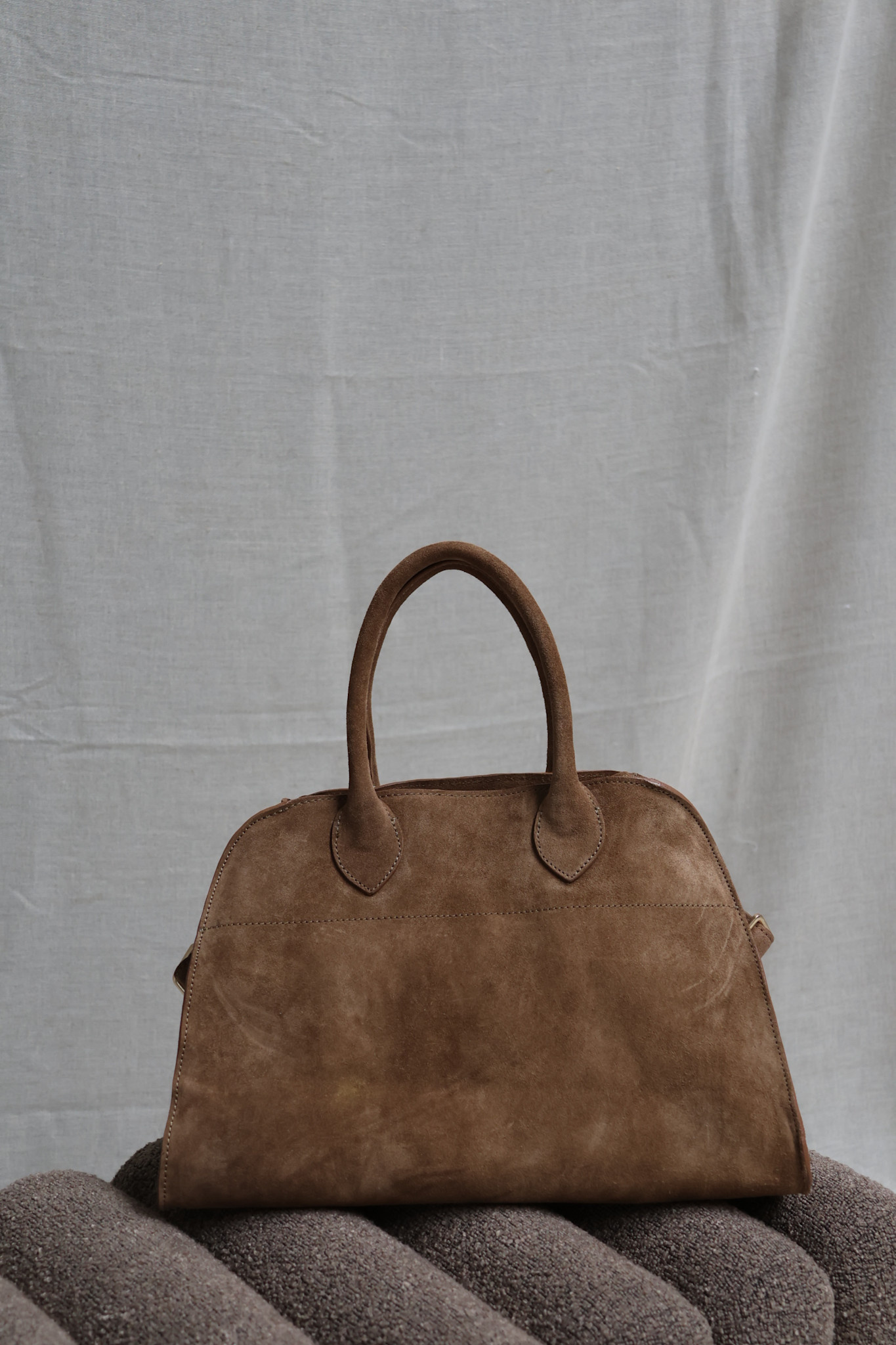 INFO YAYA: Deze elegante handtas is gemaakt van zacht suède en voorzien van twee stevige handvatten. Het model heeft een ruime vorm en is aan de zijkanten afgewerkt met verstelbare gespen voor extra detail. Een stijlvol en functioneel accessoire voor dagelijks gebruik. Afmetingen: 39 cm lang, 29,5 cm hoog, 25 cm breed, onderkant 16 cm.